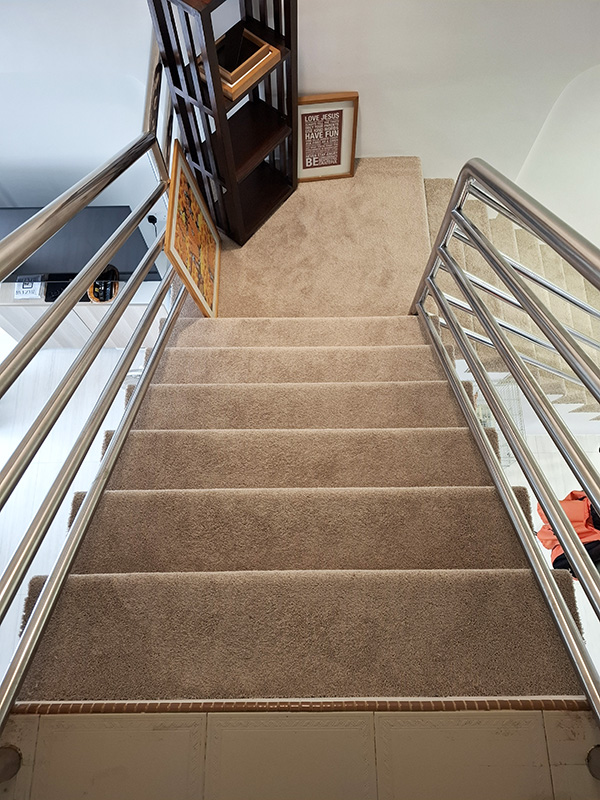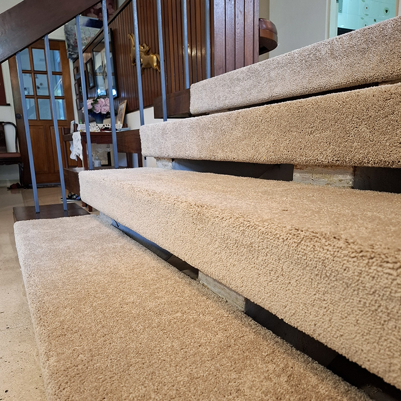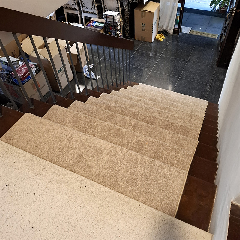 Our team understand that is not just laying carpet. We use the right glue and tools to ensure every job is completed at a higher standard of what our customer want. Call and discuss your carpet requirement with us for your staircase specific needs.