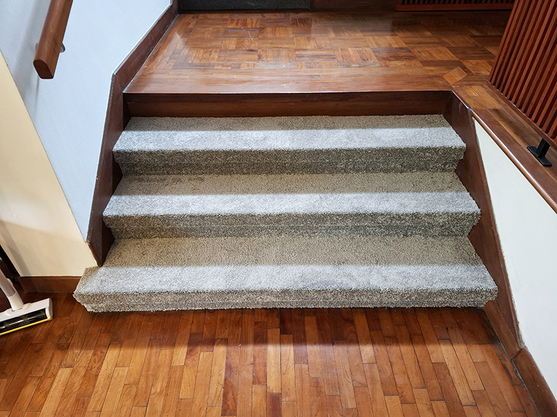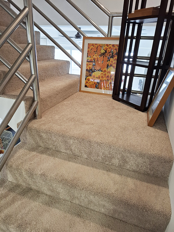 Staircase Carpet Specialist, our service include stairs carpet replacement, staircase carpet installation, replace old stair carpet for HDB Maisonette, landed property, cluster houses and shophouse in Singapore.