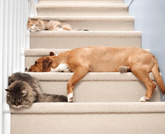 Carpet install on stairs help better stability for cat & dogs, preventing slips and fall. Carpet helps your pet walk up and down safely, reducing the risk of falls and potential injuries.