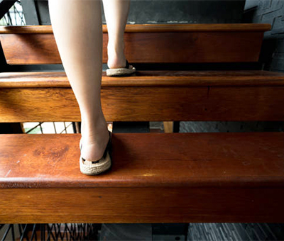 Adding carpet to your stairs, reduce knee pain while walking up and down. Absorbs impact, reduces discomfort.